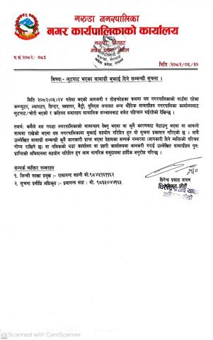 आ.व.२०८२/०८३ को लागि आन्तिरिक आय ठेक्का सम्बन्धि शिलबन्दी दरभाउ पत्र आह्वानको सूचना ।